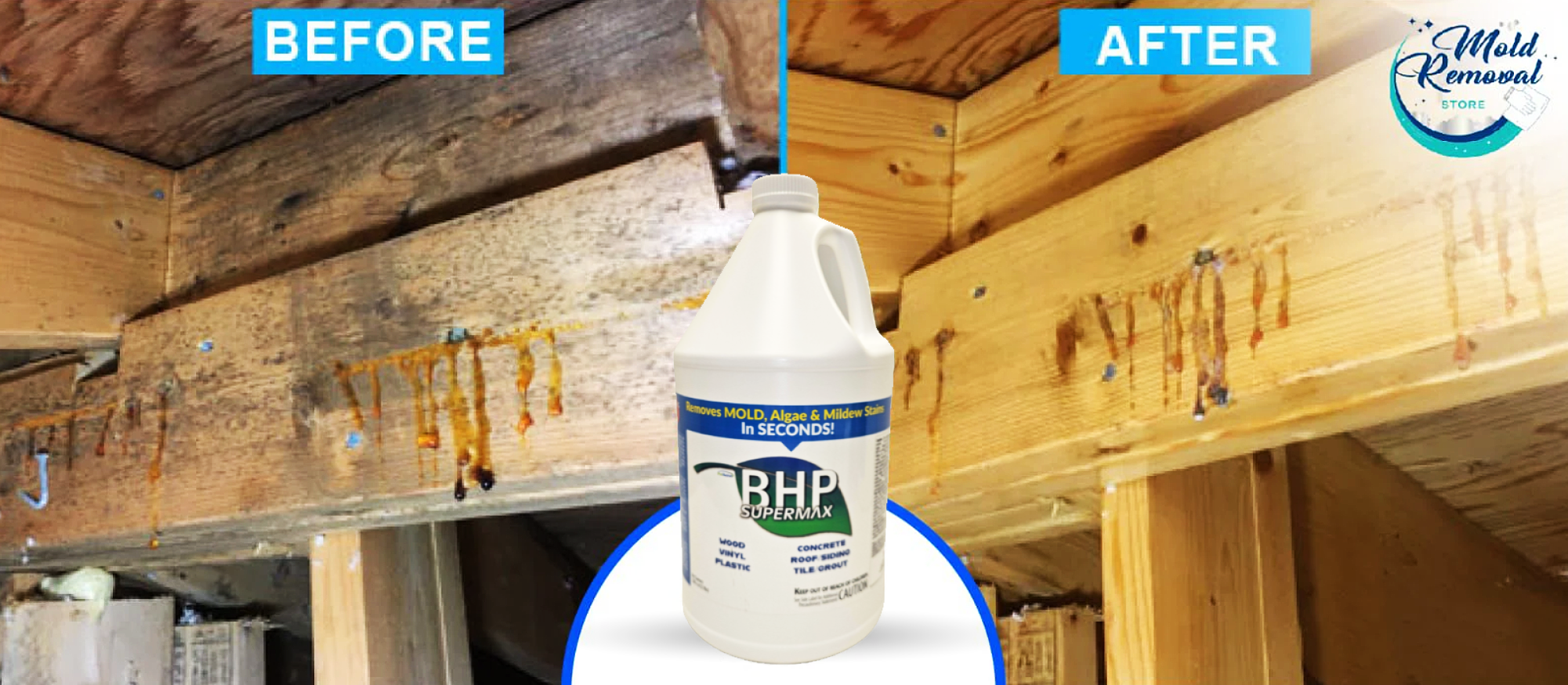 BHP Supermax - demonstrated on mold stained wood and painted surfaces. WOW!